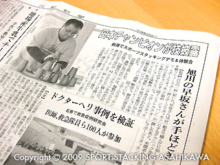 PR「スポーツスタッキング」の普及を目的に北海道旭川市を拠点にデモンストレーションやワークショップ、イベント参加等の活動を行っています。ひとりでも多く「スポーツスタッキング」の魅力を体験し、大いに楽しんでもらえるコミュニケーションづくりを目指しています。