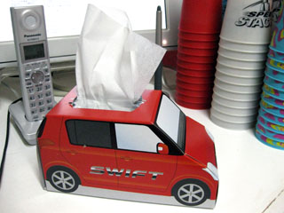 その先週に頂いたモノですが、「クルマ型のテッシュ」。