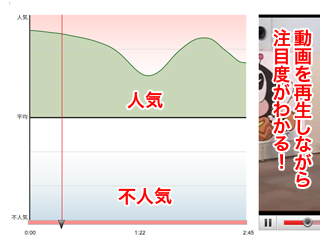 動画を再生しながら、シーンごとに注目度がわかります!