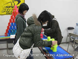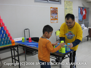 「スポーツスタッキングあさひかわ」の体験コーナーの他、