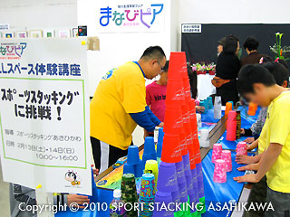 「スポーツスタッキング」の普及を目的に北海道旭川市を拠点にデモンストレーションやワークショップ、イベント参加等の活動を行っています。ひとりでも多く「スポーツスタッキング」の魅力を体験し、大いに楽しんでもらえるコミュニケーションづくりを目指しています。