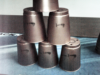 後は、2種類の色のカップを混ぜて練習したりします。