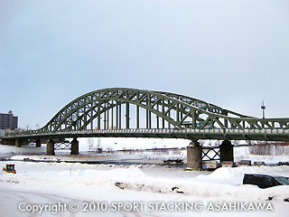 久々に旭橋を通りました。もう既に冬まつりの雪像づくりが